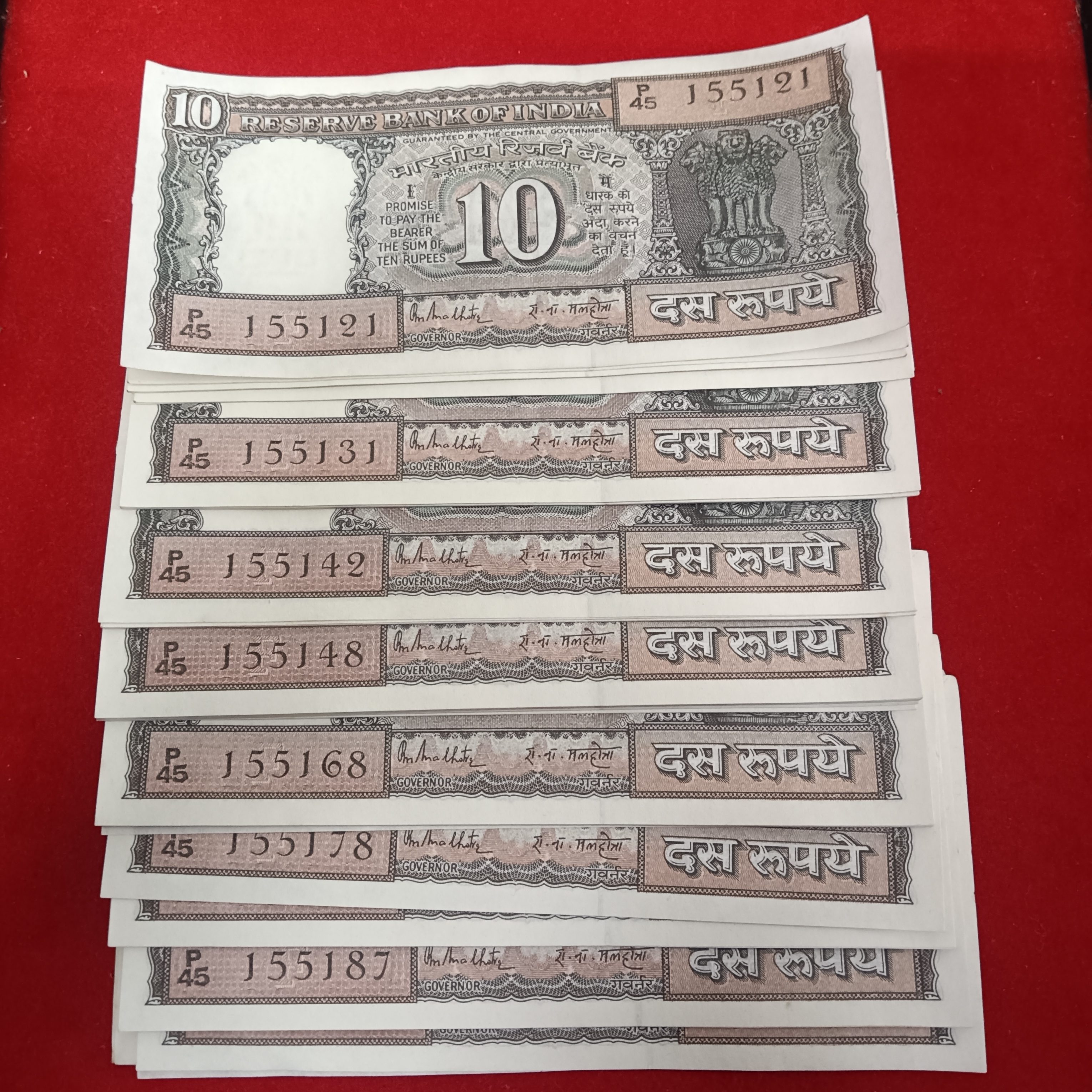 Ten Rs Rare Black Boat Serial Notes 80 Pcs Gem Unc Condition Governor RN Malhotra 155121