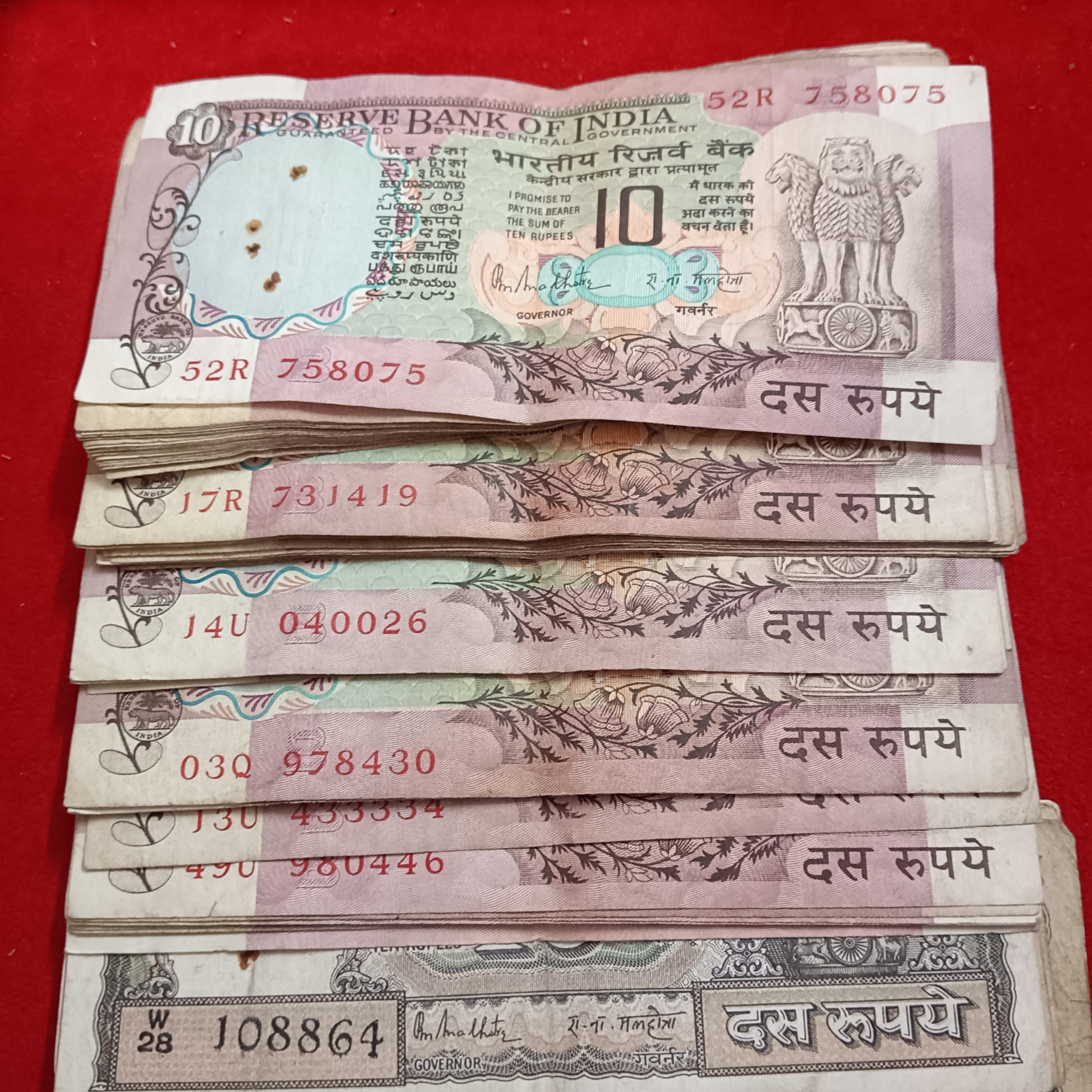 Ten Rs Rare Losse Notes Peacock 57 Pcs or Black Boat 43 Pcs Given Republic of India