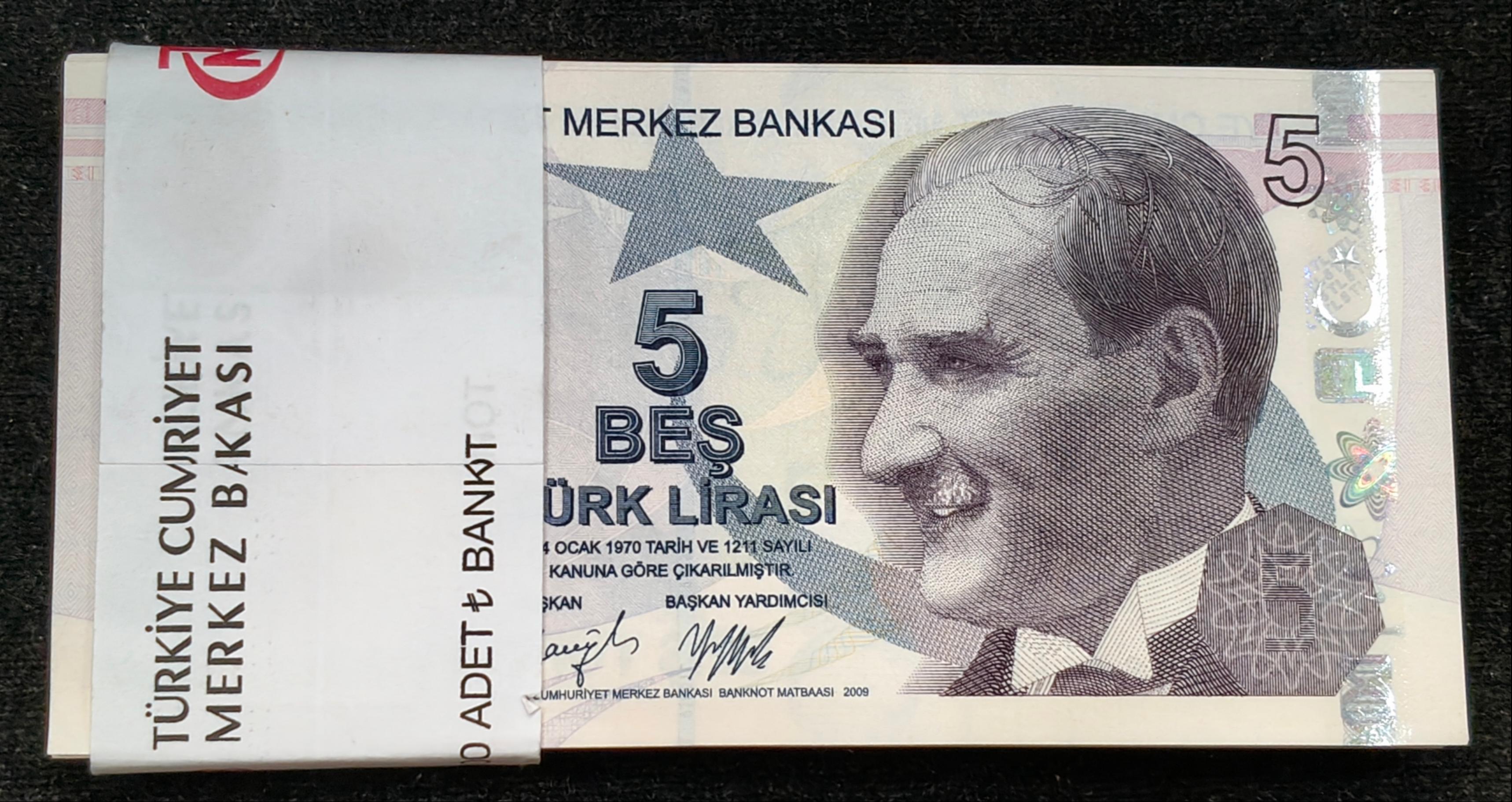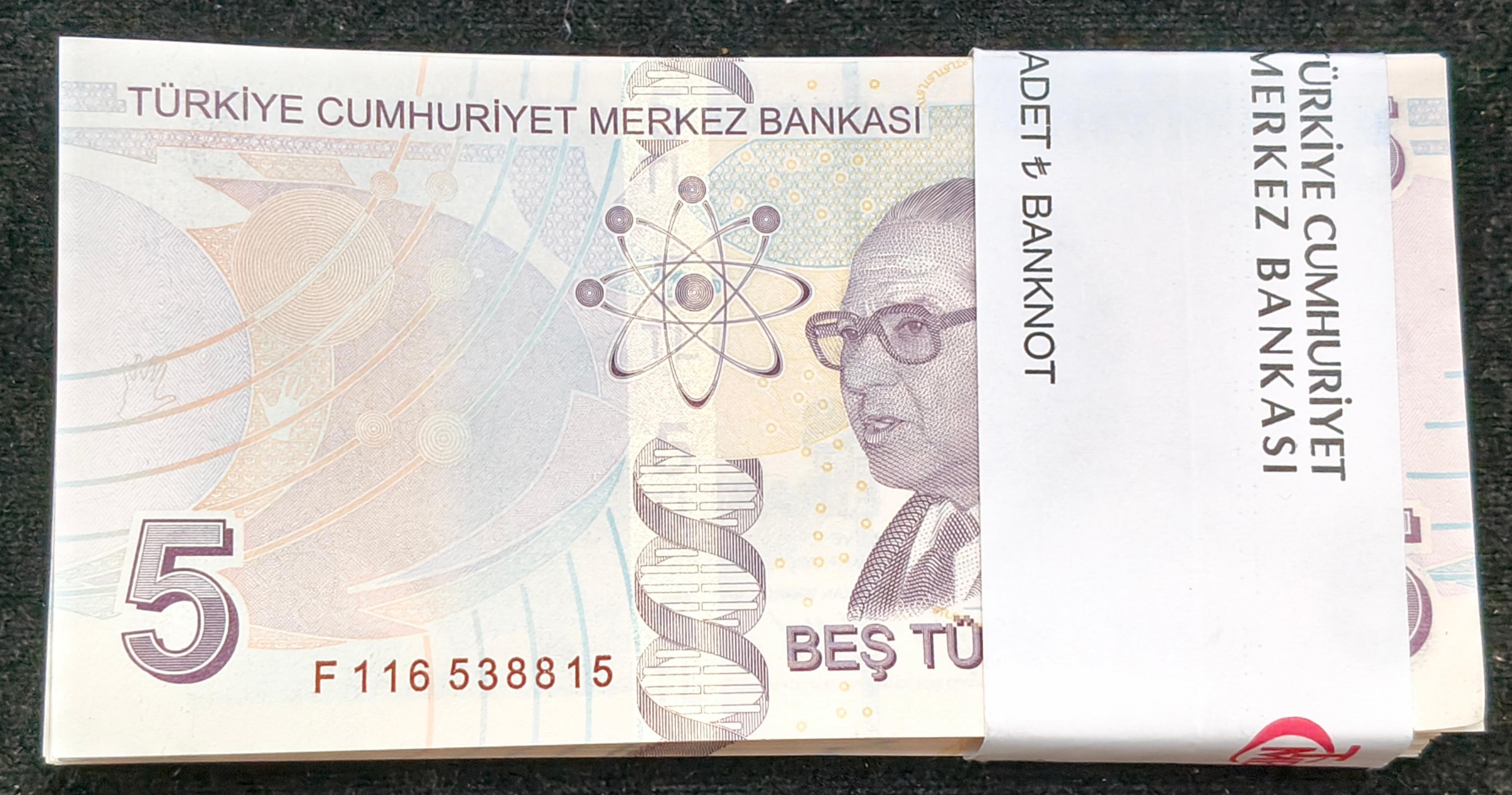 Turkey 5 Lira UNC (100 Note) Non Serial Packet