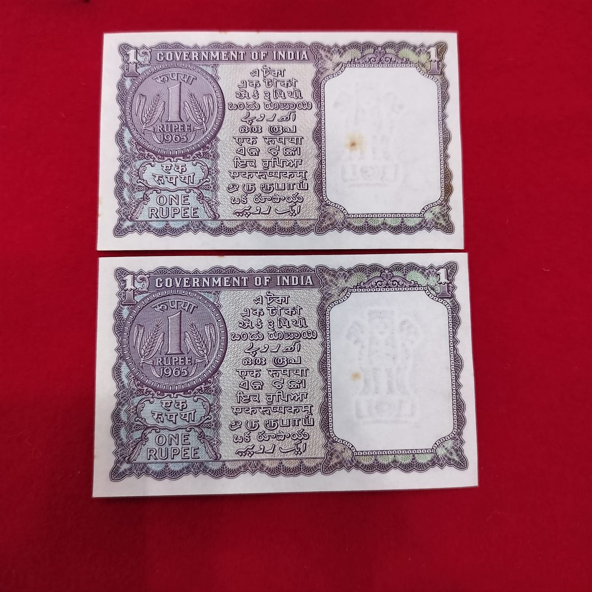 1 Rupee 1965 S bhoothlingam UNC Without Pinhole Set of 2 Notes
