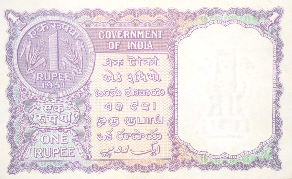1 Rupee of Republic India (AD 1951) H.M. Patel Signature – Violet color – Floral Motif is replaced by a Coin of 1951 Rare