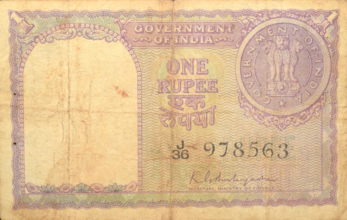 1 Rupee of Republic India (AD 1951) K.G. Ambegaonkar Signature – Violet color – Floral Motif is replaced by a Coin of 1951 Very Rare