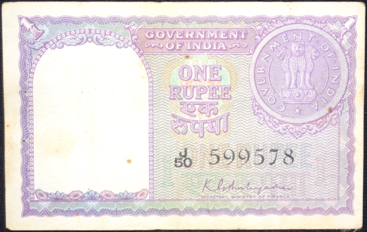 1 Rupee of Republic India (AD 1951) K.G. Ambegaonkar Signature – Violet color – Floral Motif is replaced by a Coin of 1951 Very Rare