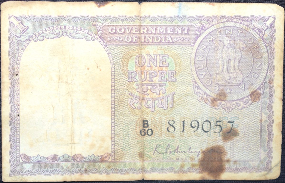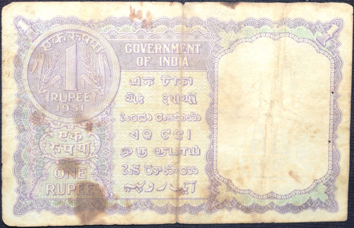 1 Rupee of Republic India (AD 1951) K.G. Ambegaonkar Signature – Violet color – Floral Motif is replaced by a Coin of 1951 Very Rare