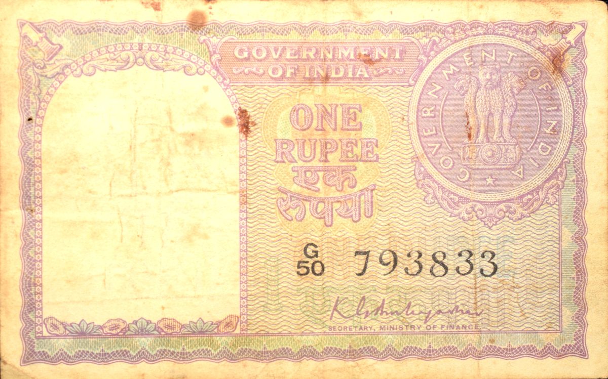 1 Rupee of Republic India (AD 1951) of K.G. Ambegaokar with ‘G’ Prefix Very Rare