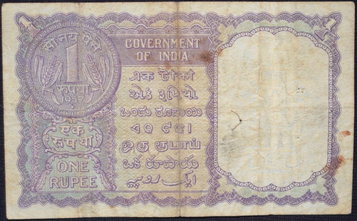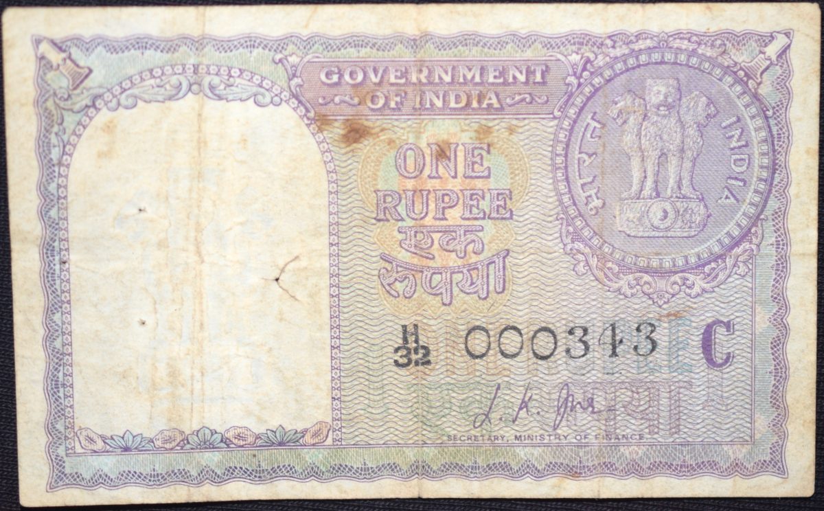 Republic India, (AD 1957), 1 Rupee ‘C’ Inset, Sau (100) Naye paise in coin on the back, L.K. Jha Signature, About Very Fine as per Image, Rare.
