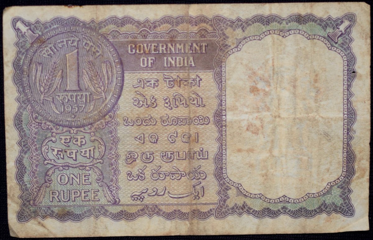 Republic India, (AD 1957), 1 Rupee ‘D’ Inset ‘C’ Prefix, Sau (100) Naye paise in coin on the back, L.K. Jha Signature, About Very Fine as per Image, Rare.