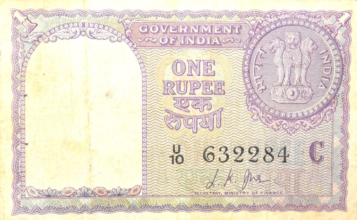 1 Rupee of Republic India (AD 1957) L.K Jha Signature – Sau (100) Naye paise in coin on the back