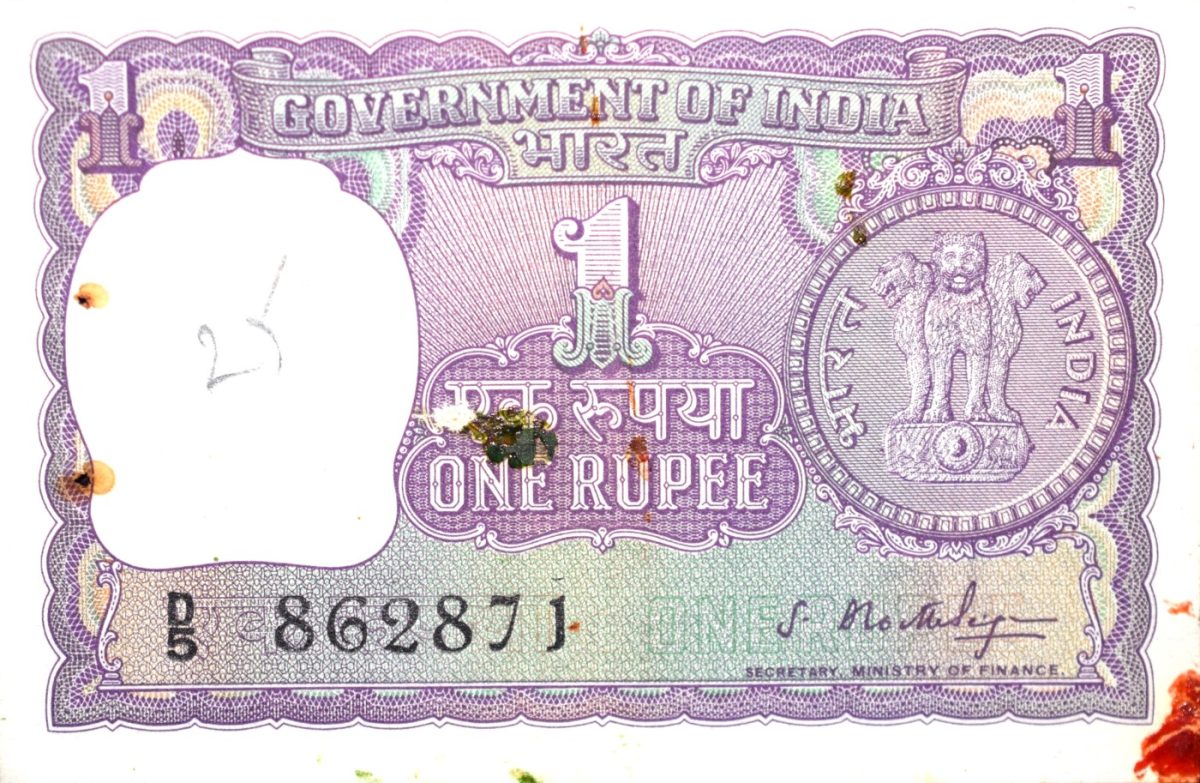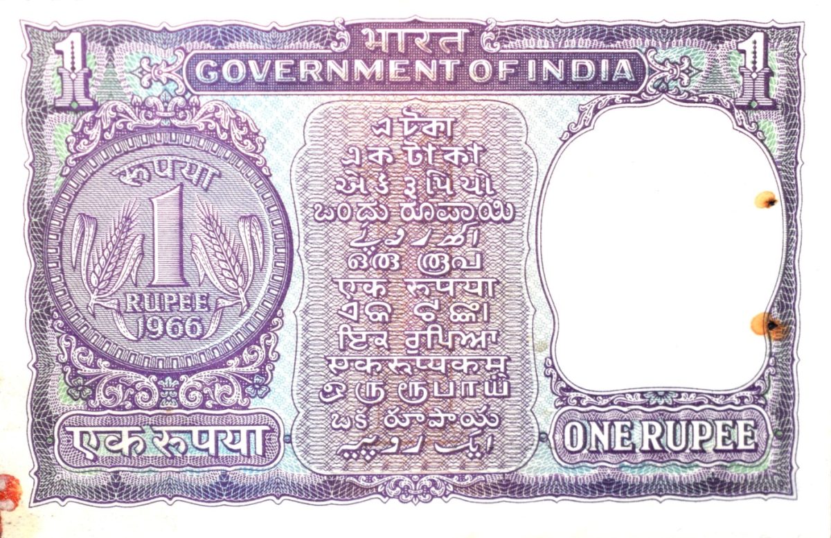 1 Rupee of Republic India (AD 1966) S. Bhoothlingam – Violet color. Smaller watermark window and num