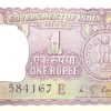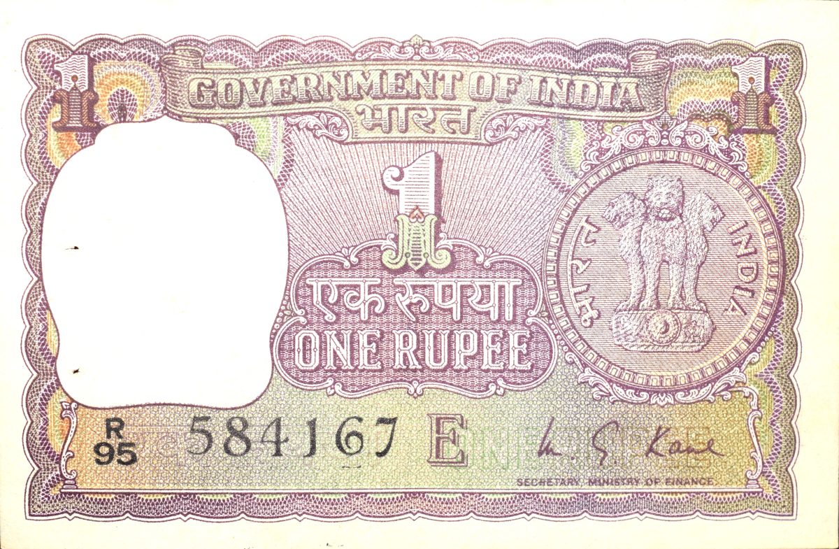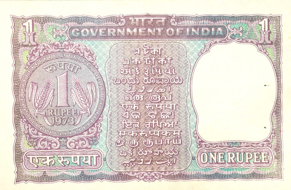 1 Rupee of Republic India (AD 1973) M.G. Kaul – Violet color. Smaller watermark window and numbers to the left. Large ornamental 1 in the centre