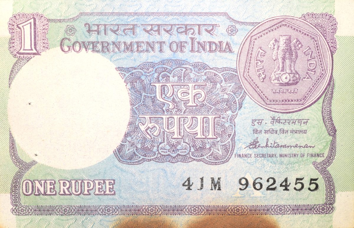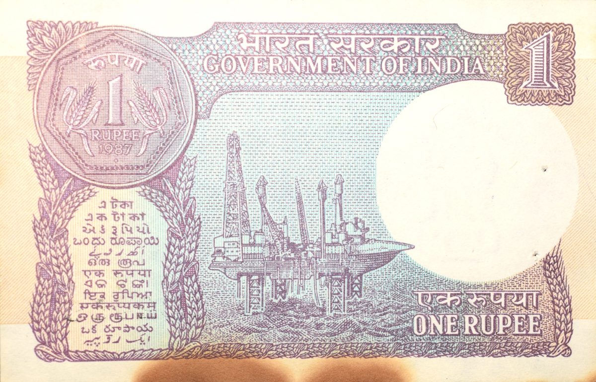 1 Rupee of Republic India (AD 1987) S. Venkitaramanan Signature – Sagar Samrat – oil rig