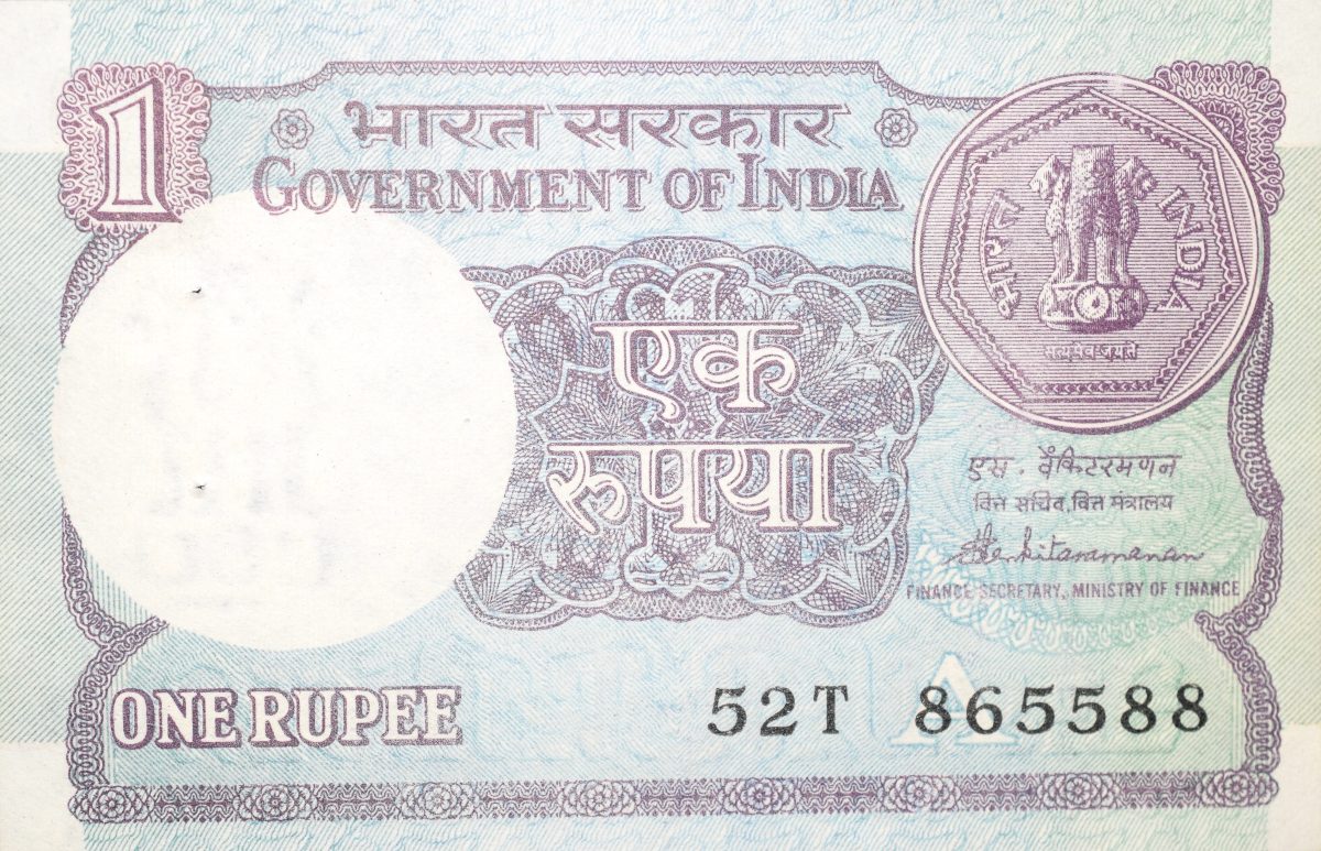 1 Rupee of Republic India (AD 1988) S. Venkitaramanan Signature – Sagar Samrat – oil rig