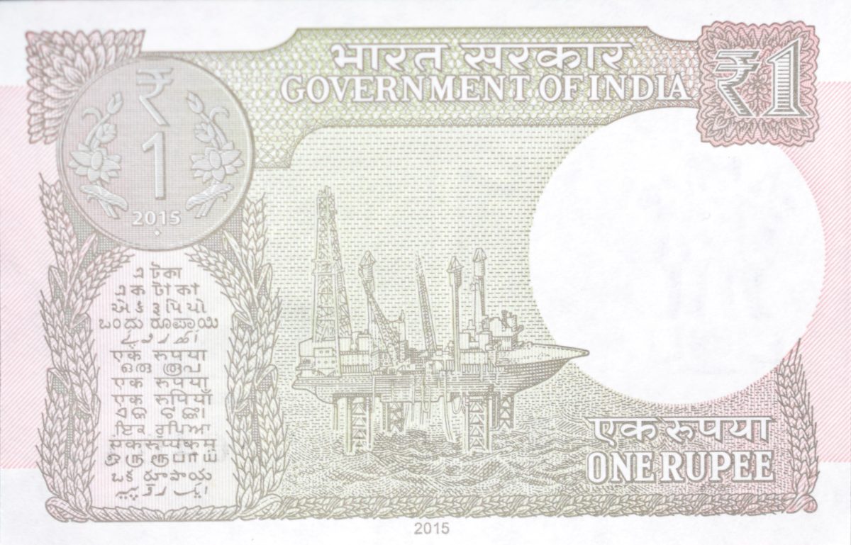 1 Rupee of Republic India (AD 2015) Rajiv Mehrishi Signature – Sagar Samrat – oil rig