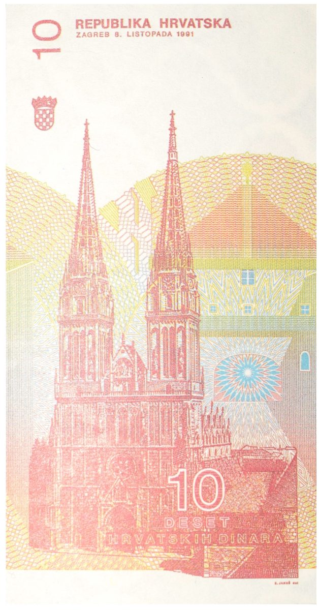 10 Dinar of Croatia Country (AD 1991) with Zagreb Cathedral