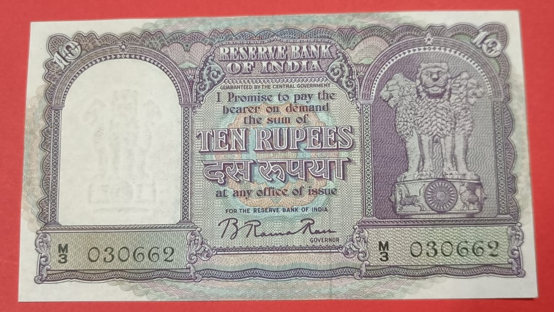Indulge in the exquisite world of numismatics with this 10 Rupees B Ramarao Fafda Note in GEM UNC Condition. This rare birthday note, bearing the signature of B Rama Rau, is a prized possession for collectors and enthusiasts alike. Issued in a limited quantity, this note stands out not just for its denomination but also for its impeccable condition and unique design. The year of issue and specific historical context add to its allure, making it a valuable piece for those passionate about Indian currency history.