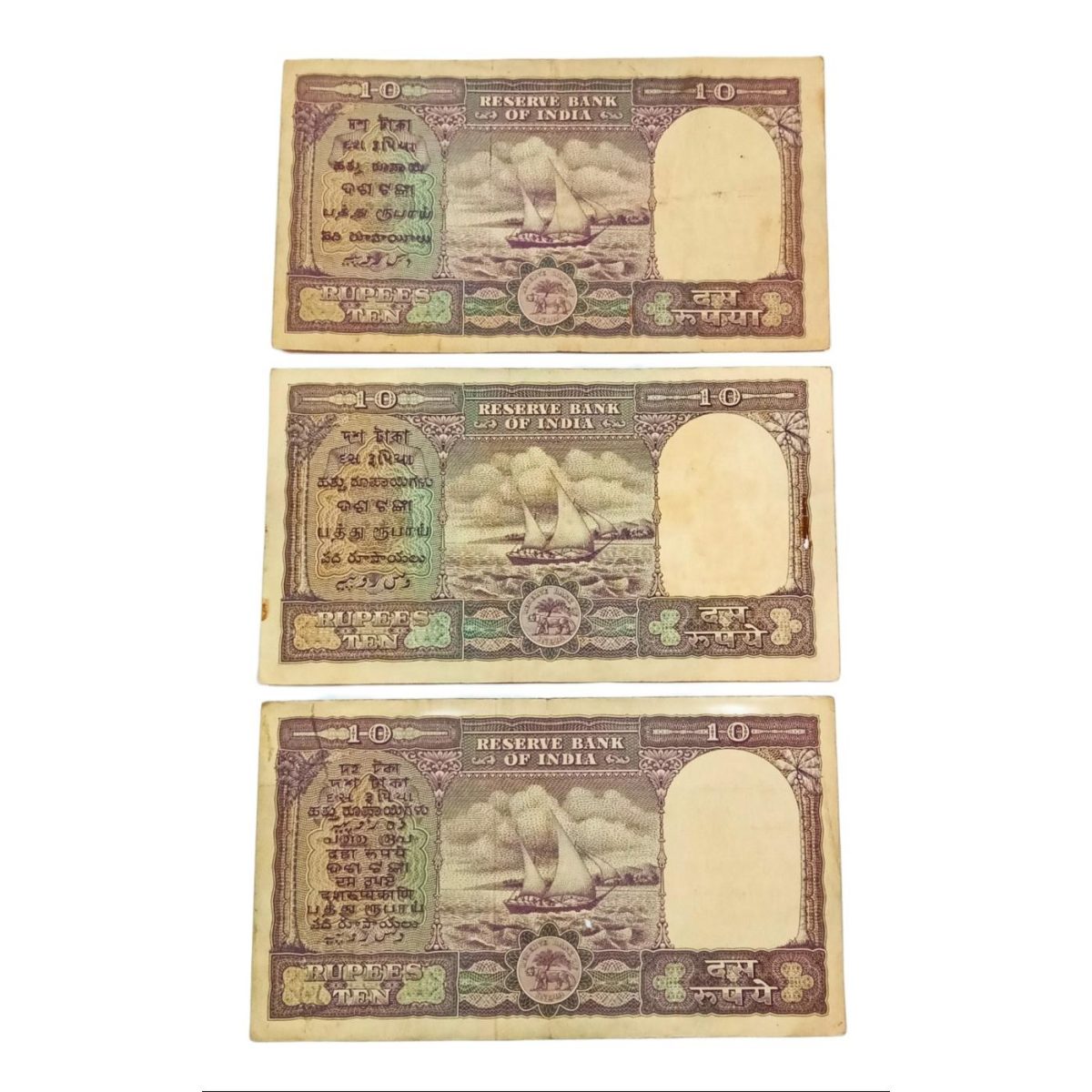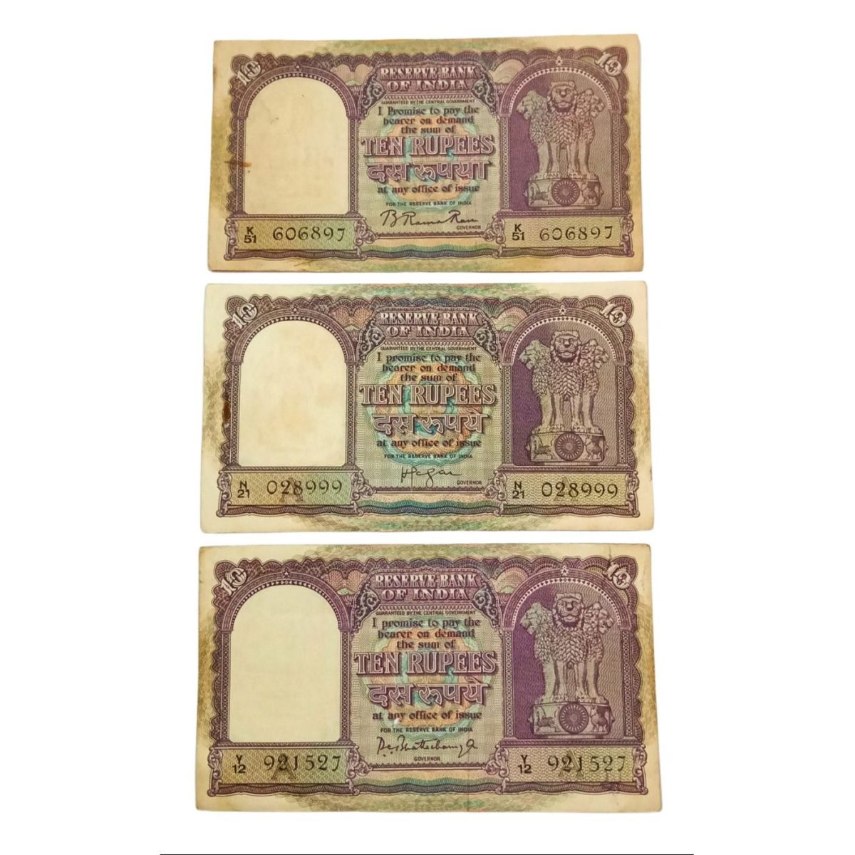 10 Rupees Big FAFRA Issue B.RAMA RAO, H.V IYENGAR, P.C BHATTACHARYA 3 Different Sign Set Collectable