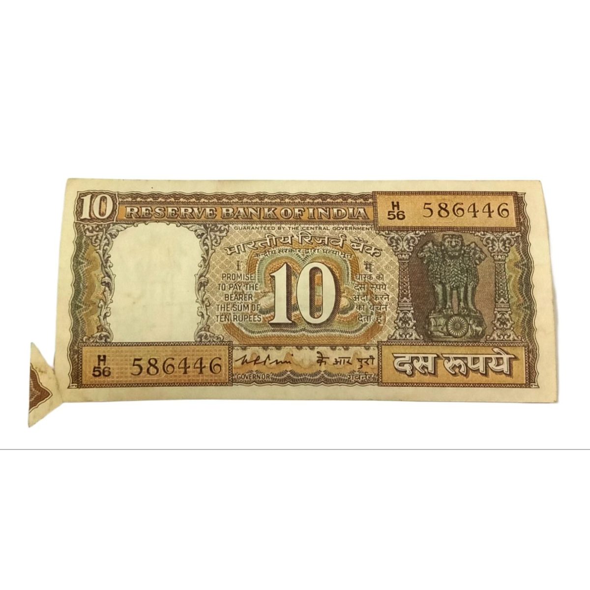 10 Rupees BLACK BOAT ⛵ K.R PURI with FLIP FOLD BUTTERFLY EXTRA PAPER Error **V. RARE** AUNC Grade.