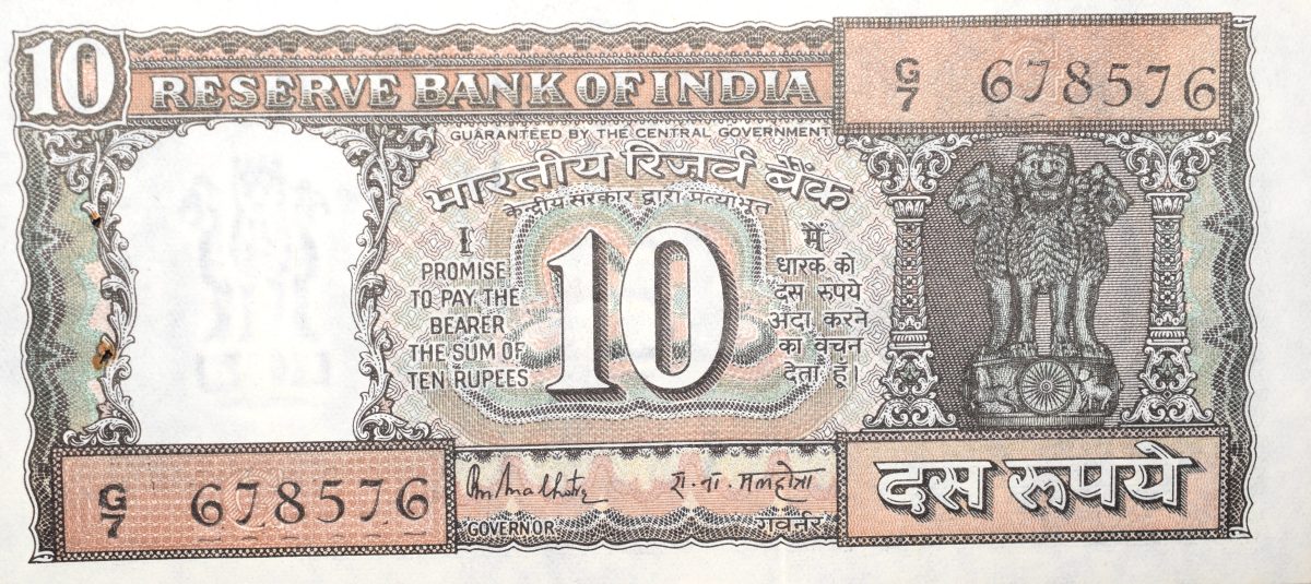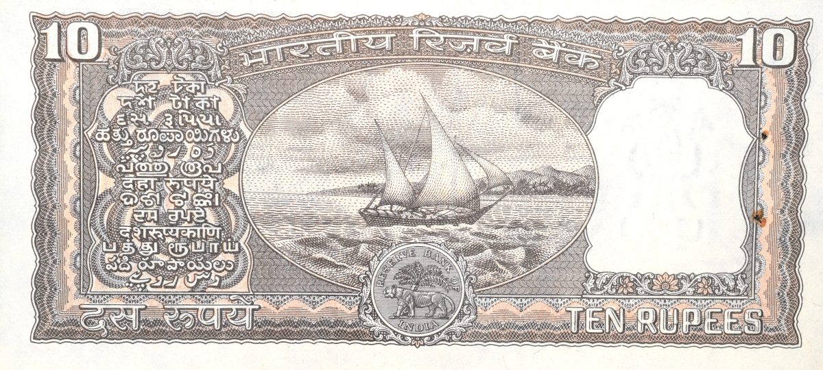10 Rupees of Republic India (AD 1985-1990) R.N. Malhotra Signature Black note with Boat About UNC