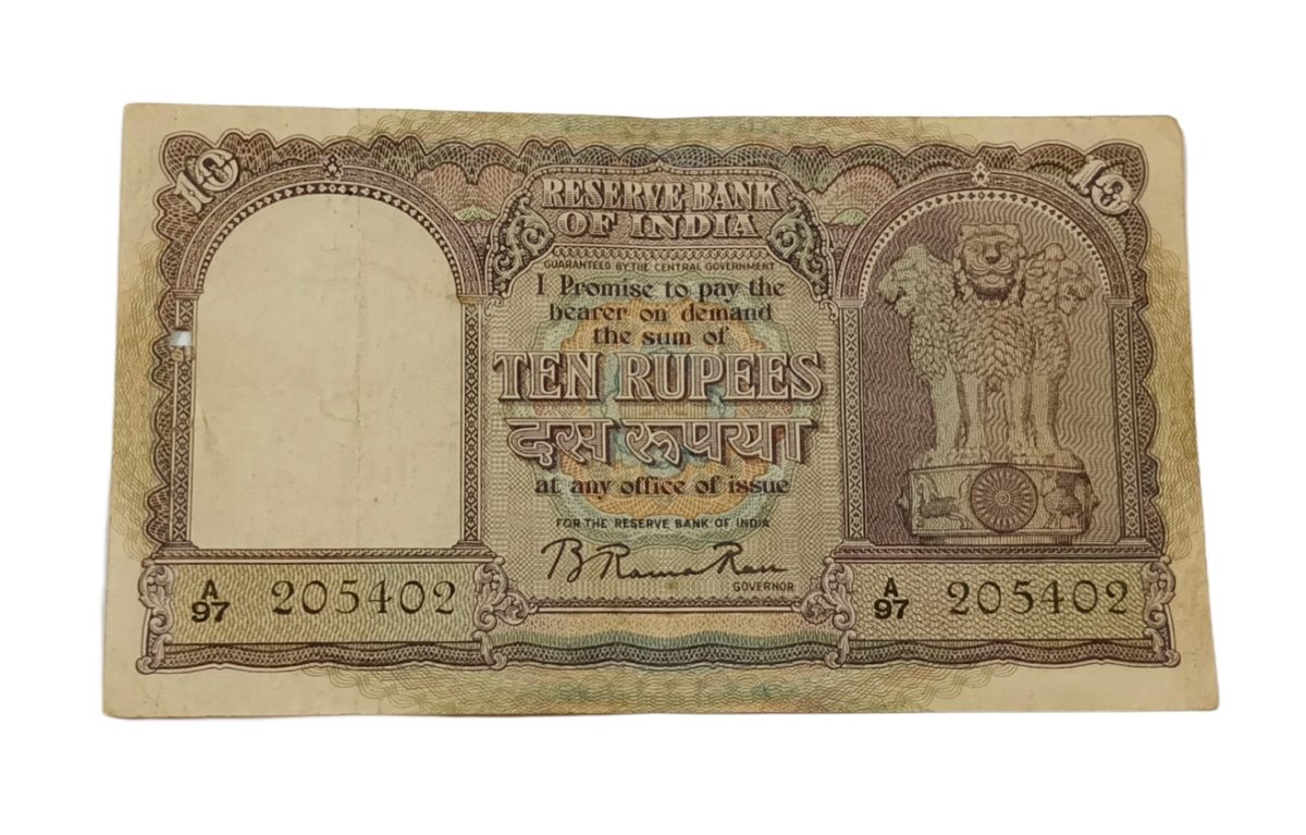 10 Rupees Old Big FAFRA Issue B.RAMA RAO “RUPAYAA” 3rd Issue **V. SCARE** Collectable Grade.