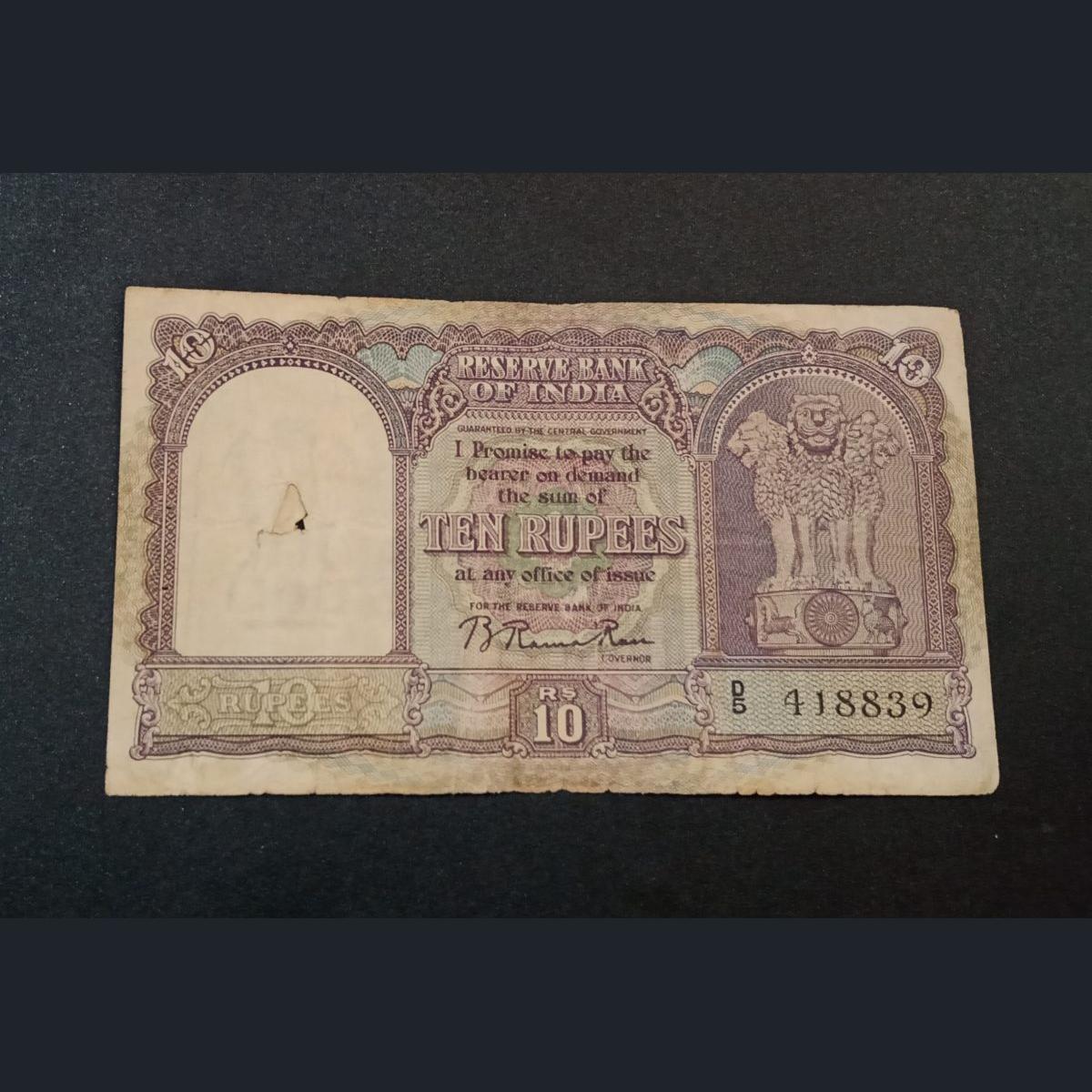 10 Rupees Old Big FAFRA Issue Signatue B.RAMA RAO Second Issue “ONLY ENGLISH” Catalog Number D-2 VERY RARE High Collectable Grade.