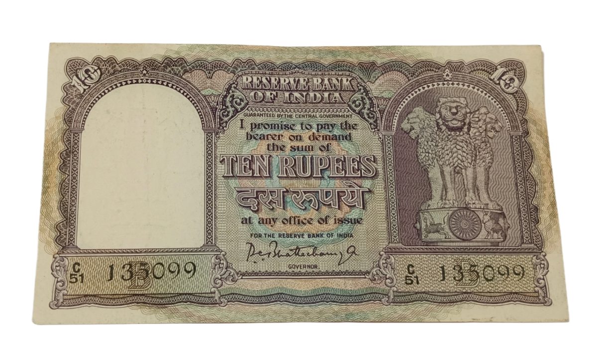 Packaged with care and attention to detail, this banknote comes with a certification of authenticity, ensuring its provenance and quality. Its remarkable condition and distinct features make it a standout piece in any collection, offering a glimpse into the past with each intricate detail. Embrace the opportunity to own a piece of history with this remarkable 10 Rupees Old Big FAFRA Issue banknote.