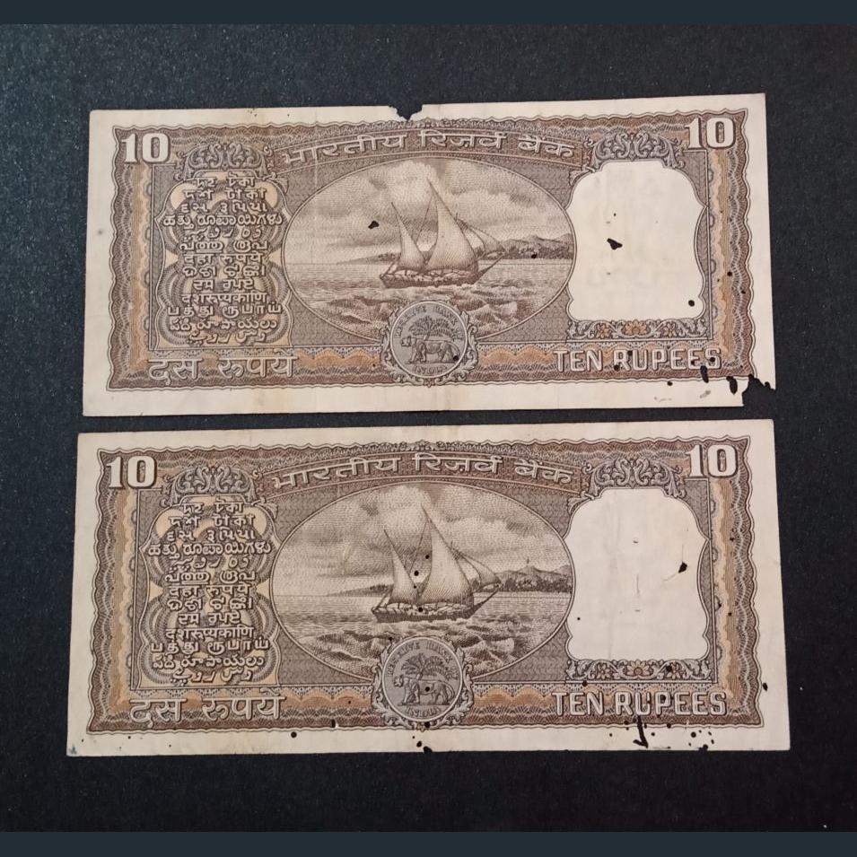 10 Rupees Old BLACK BOAT ⛵ Issue Signature M.N NARSHIMHAN “B” INSET Lot 2 Notes RARE Collectable Grades.