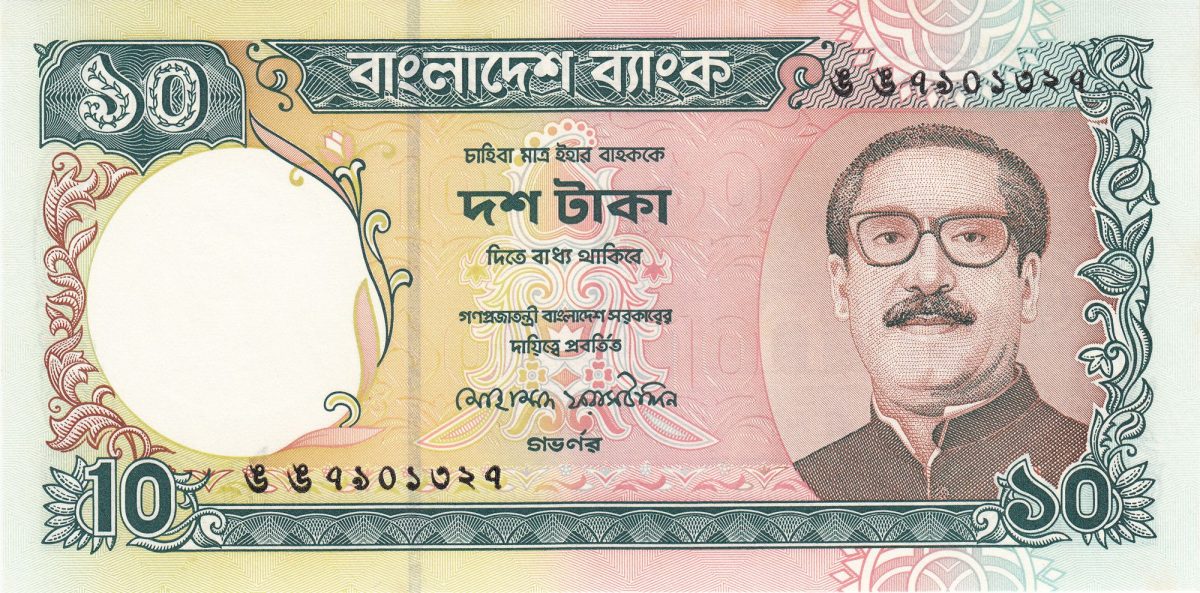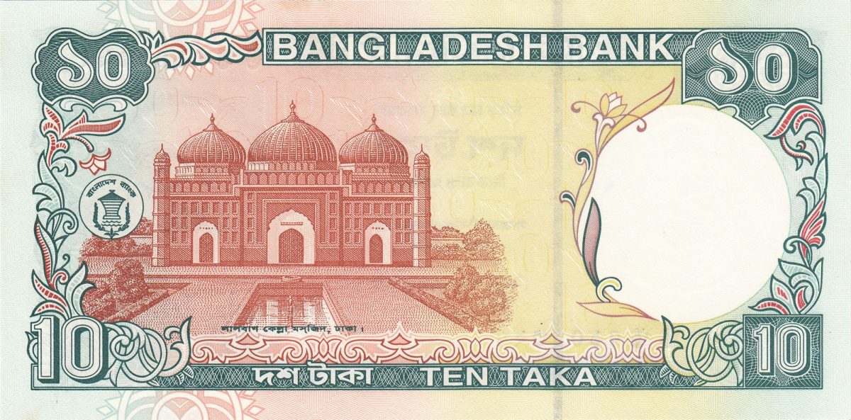10 Taka of Bangladesh (AD 1997-1998) with The Lalbagh Fort Mosque (Quilla Mosque)