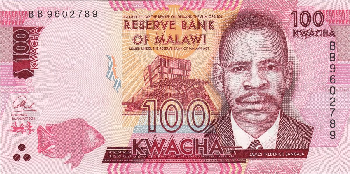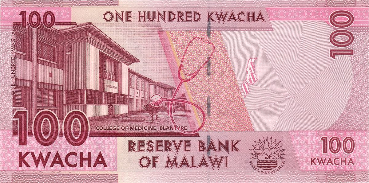 100 Kwacha of Malawi Country (AD 2014-2020) with College of Medicine in Blantyre