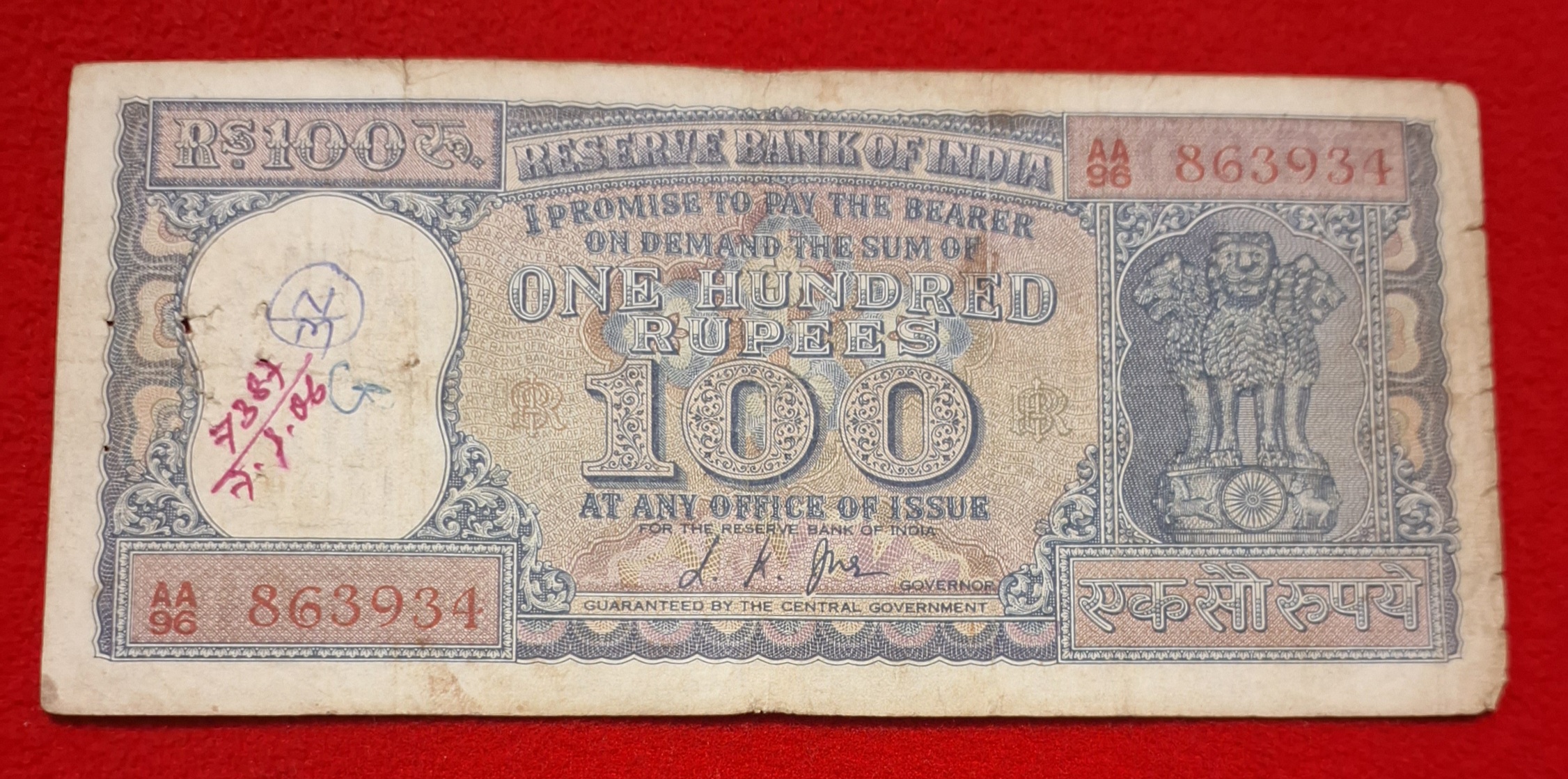 100 RUPEE DIAMOND ISSUE NOTE SERIAL NO. 863934