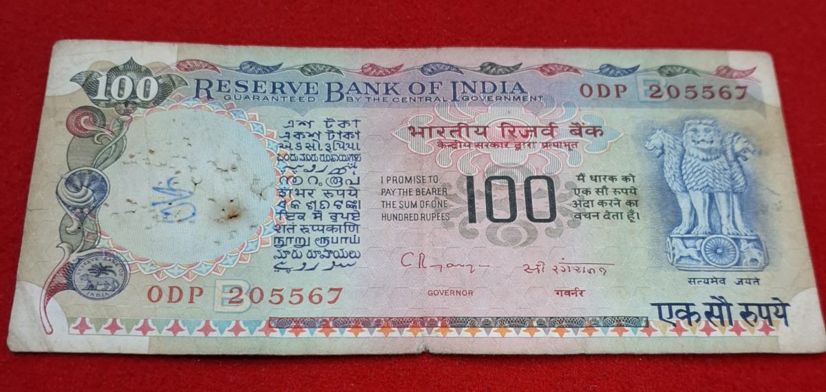 100 RUPEE NOTE AGRICULTURE ISSUE NOTE (USED) SERIAL NO. 205567
