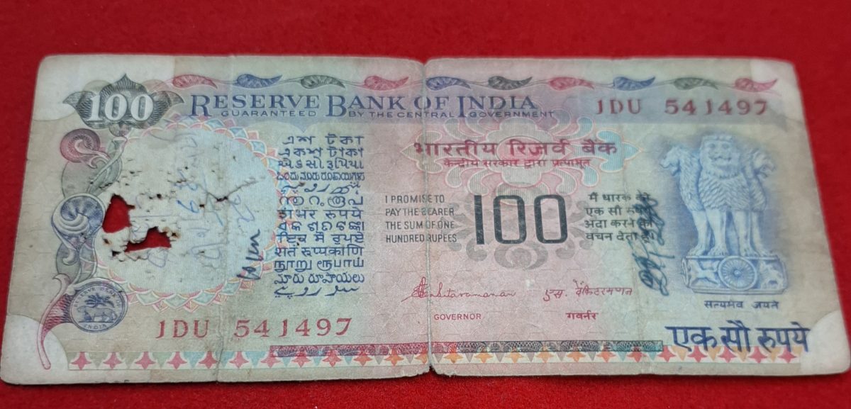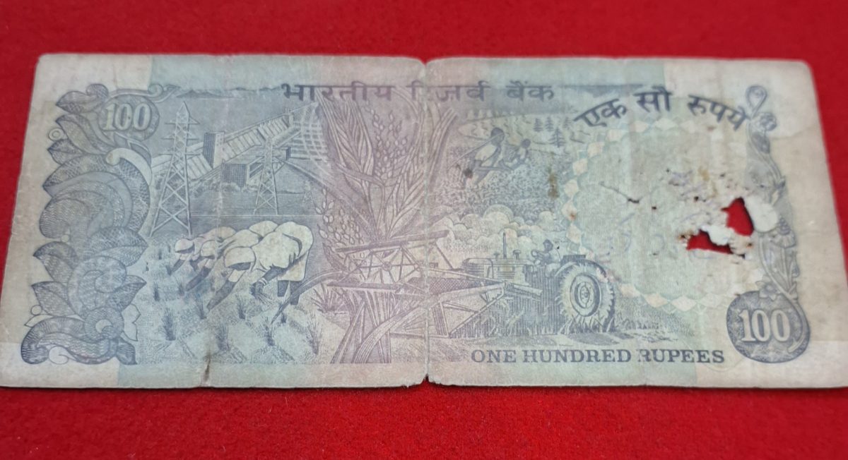 100 RUPEE NOTE AGRICULTURE ISSUE NOTE (USED) SERIAL NO. 541497