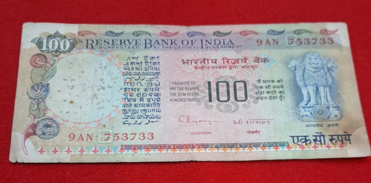 100 RUPEE NOTE AGRICULTURE ISSUE NOTE (USED) SERIAL NO. 753733
