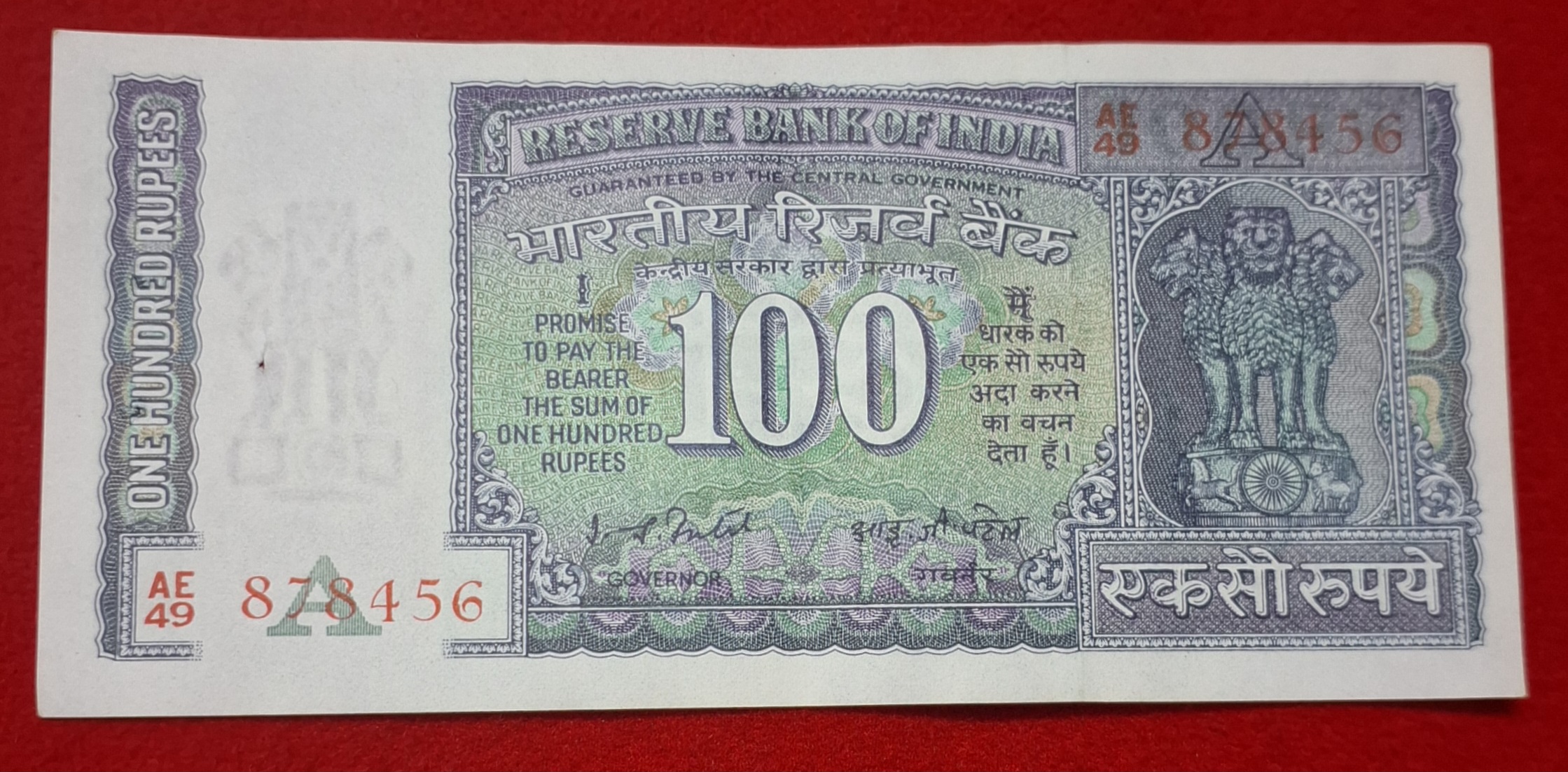 100 RUPEE NOTE DAM ISSUE SERIAL NO. 878456