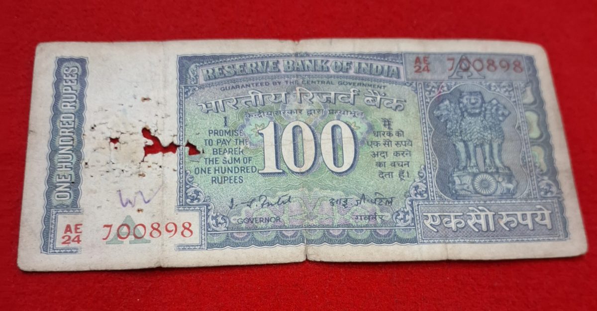 100 RUPEE NOTE DAM ISSUE (USED) SERIAL NO. 700898