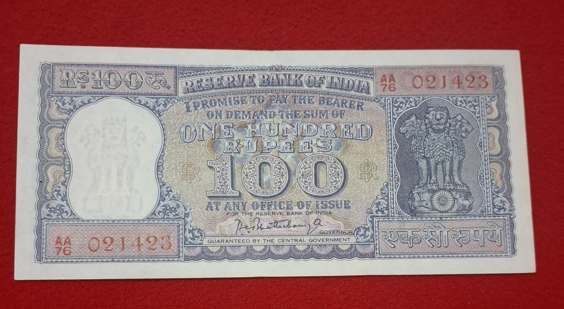 100 RUPEE NOTE DIAMOND ISSUE MIDDLE 214 UNC CONDITION SERIAL NO. 021423