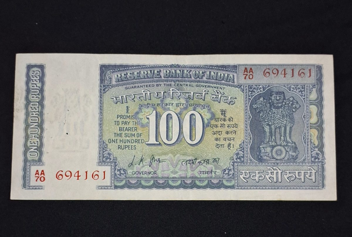 100 RUPEE NOTE GANGHI ISSUE GOVERNOR L.K. JHA SERIAL NO.694161