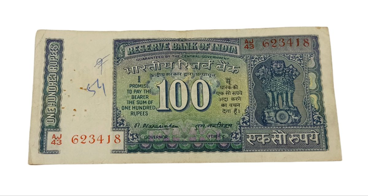 100 Rupees Old M.N NARASHIMHAN White Strips SAMLL DAM Issue **SCARE** High Collectale Grade.