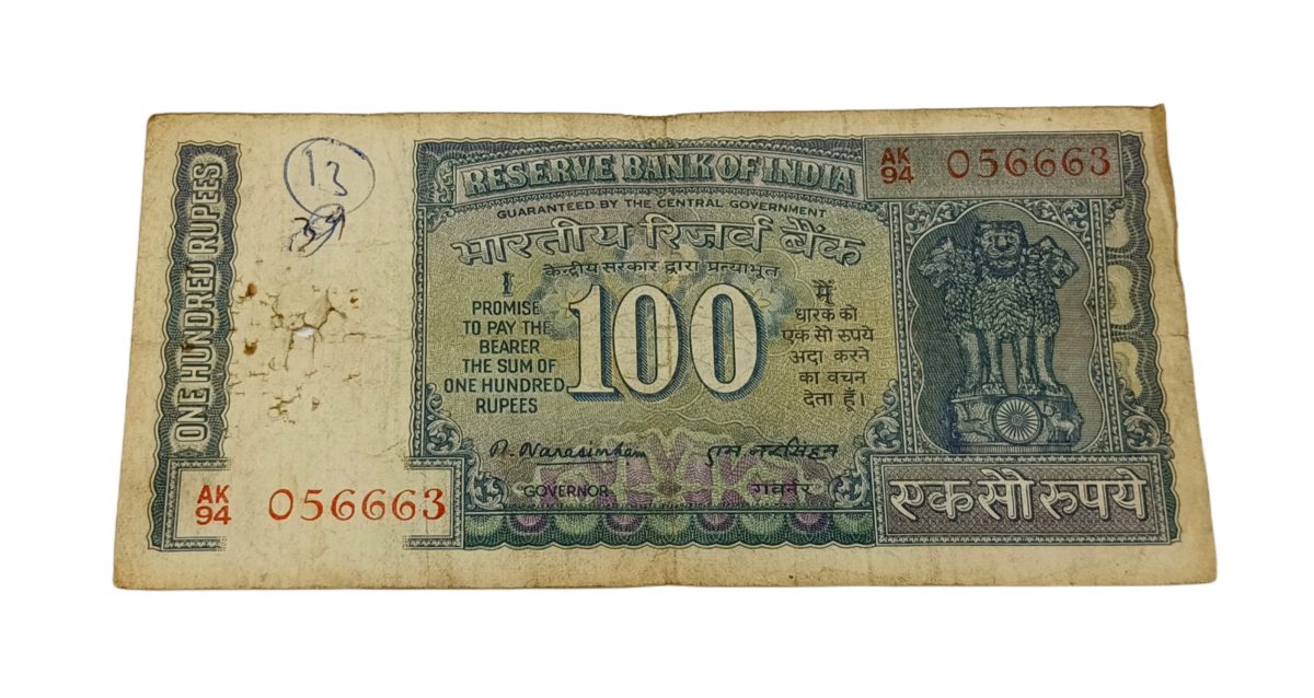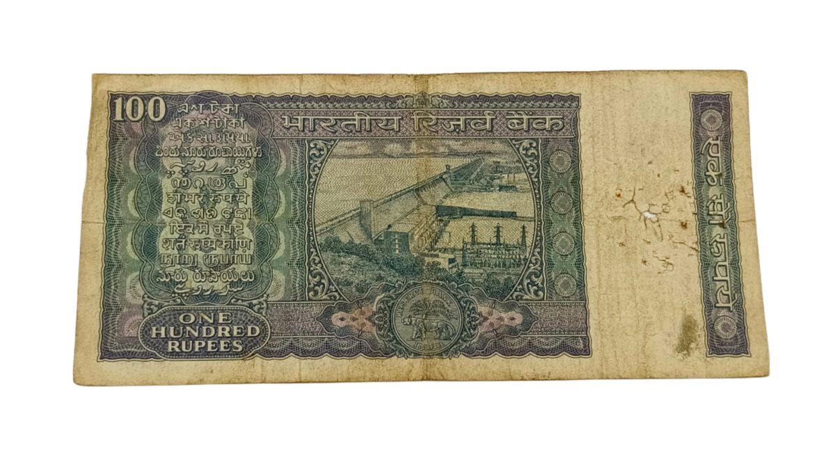 100 Rupees Old M.N NARASHIMHAN White Strips SAMLL DAM Issue **SCARE** Used Condition.