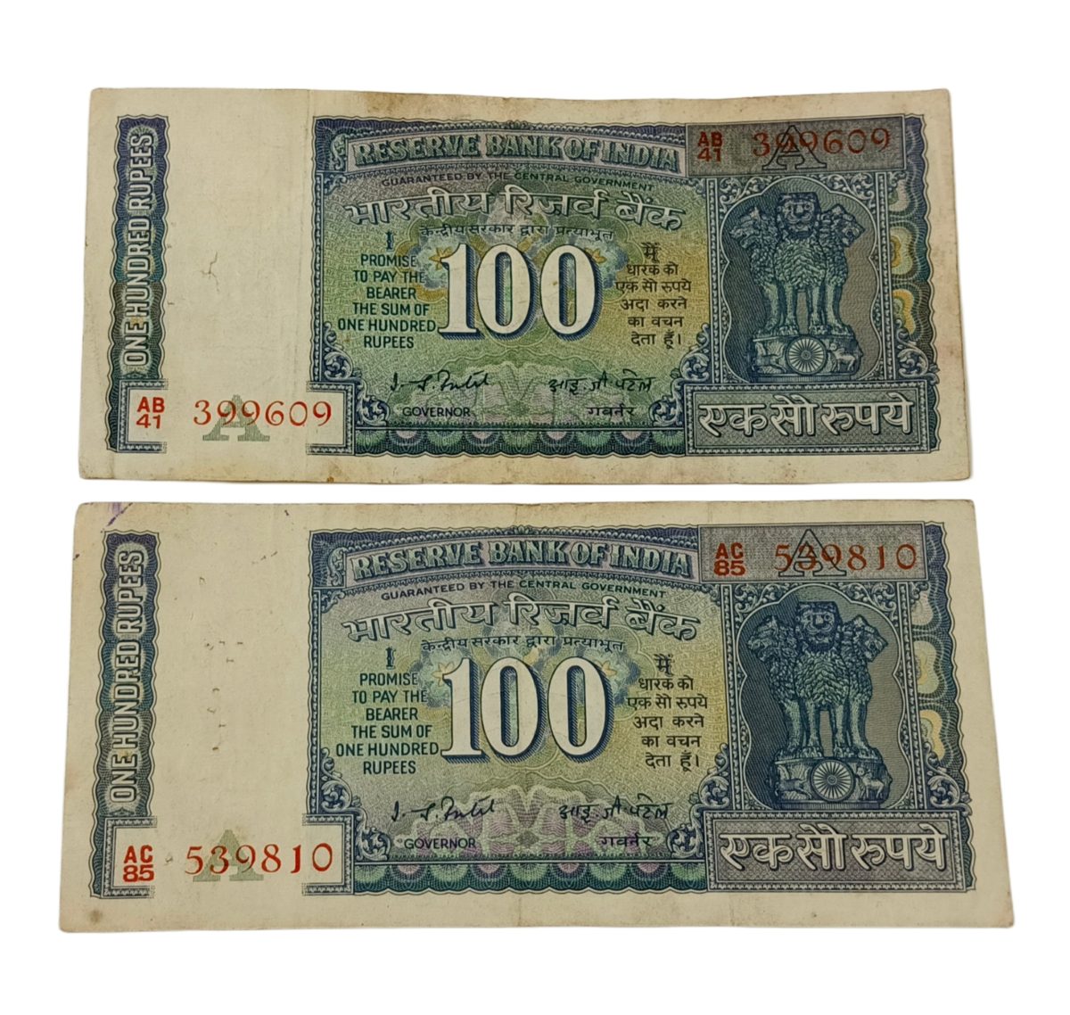 100 Rupees Old SMALL DAM Issue I.G PATEL 2 Notes are in Collectable Grades.