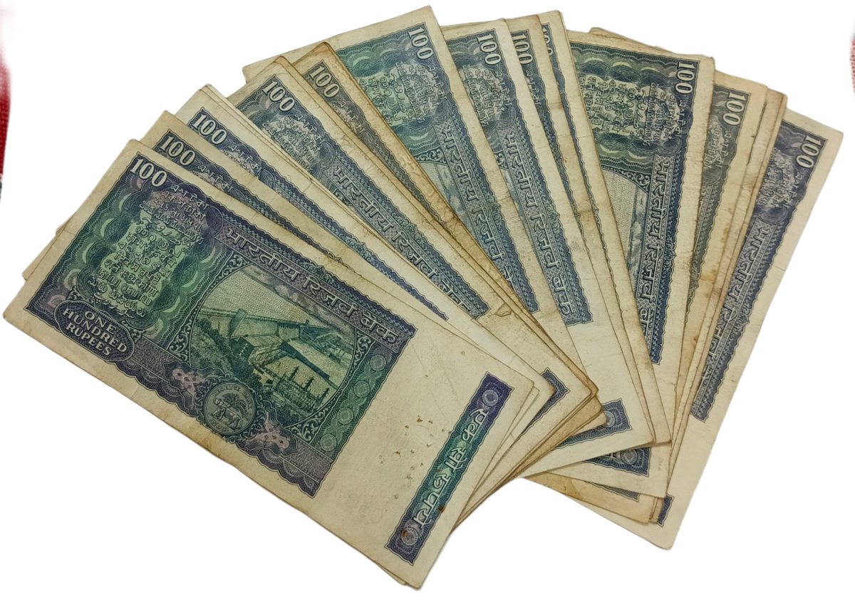 100 Rupees Old WHITE STRIPES Small Dam Issue COMPLETE SIGNATURE SET All Four “S.JAGNNATHAN, K.R PURI, M.NARASHIMHAN, I.G PATEL” Lot 4 Notes **RARE** Collectable Grades.