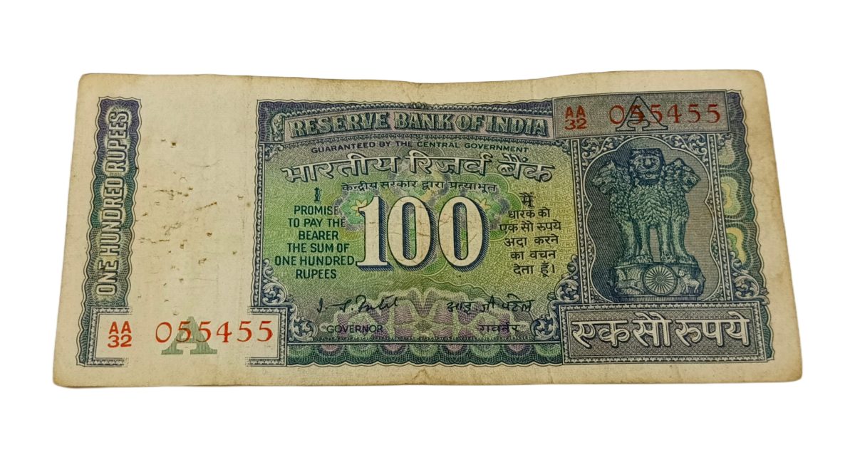 ✨ Rare 100 Rupees banknote with SAMLL DAM Issue I.G PATEL signature