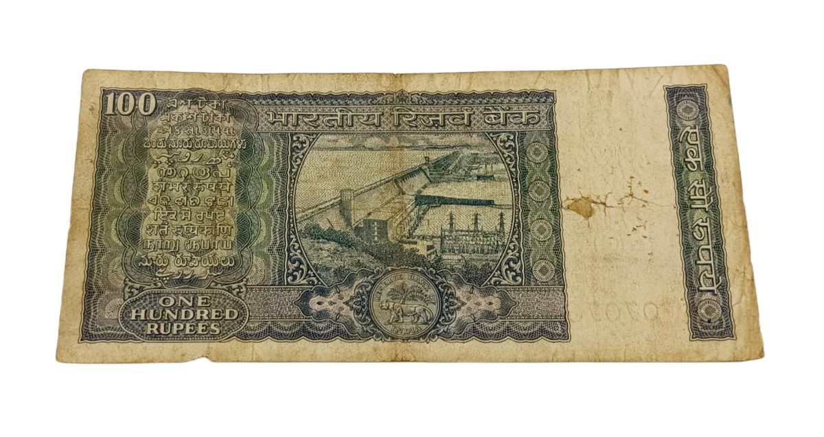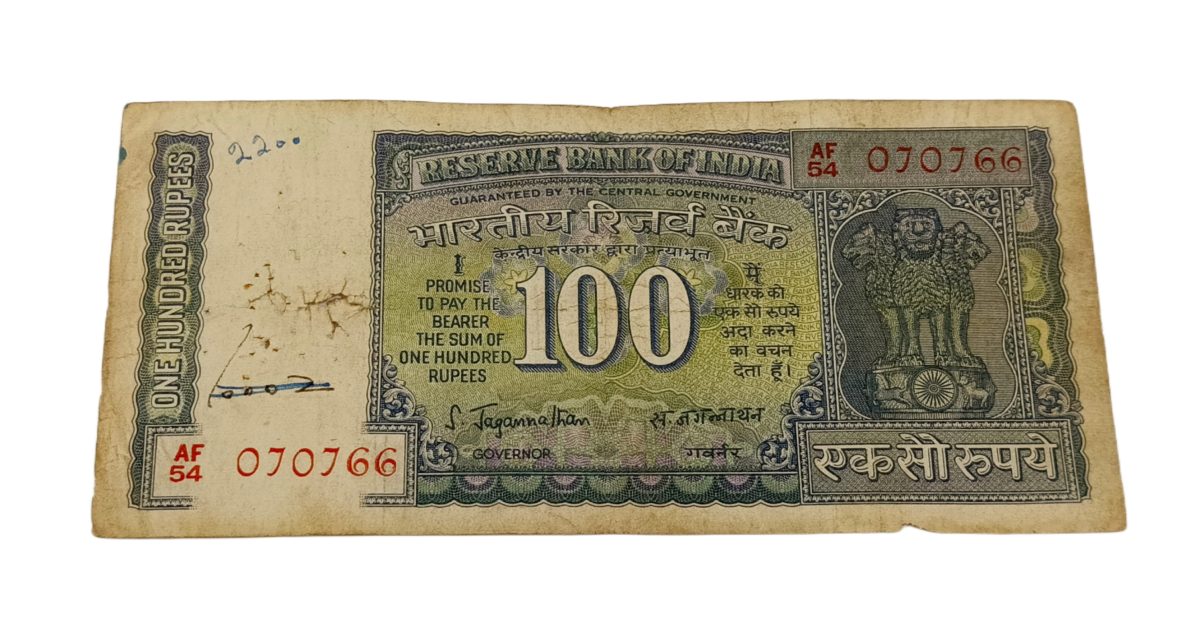 100 Rupees Old White Strips SAMLL DAM Issue S. JAGANNATHAN with SEMI-FANCY Serial Number Used Condition.