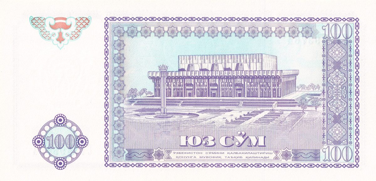 100 Som of Uzbekistan (AD 1994) with Peoples’ Friendship Palace in Tashkent
