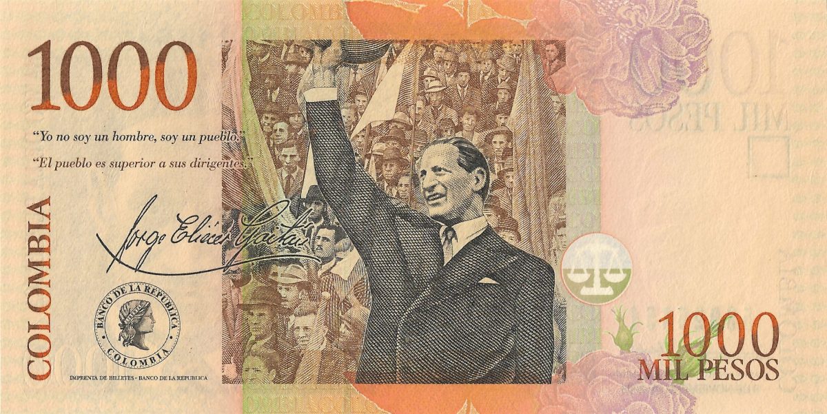 1000 Pesos of Colombia Country (AD 2015) with Portrait of Jorge Eliecer Gaitan