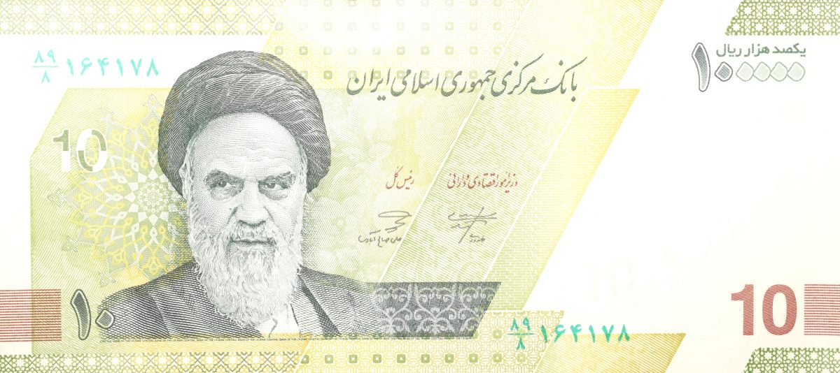 100,000 Rials of Iran (AD 2021-2023) with Ruhollah Khomeini (Ayatollah Khomayni) Supreme Leader of Iran