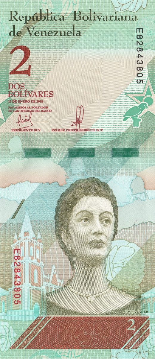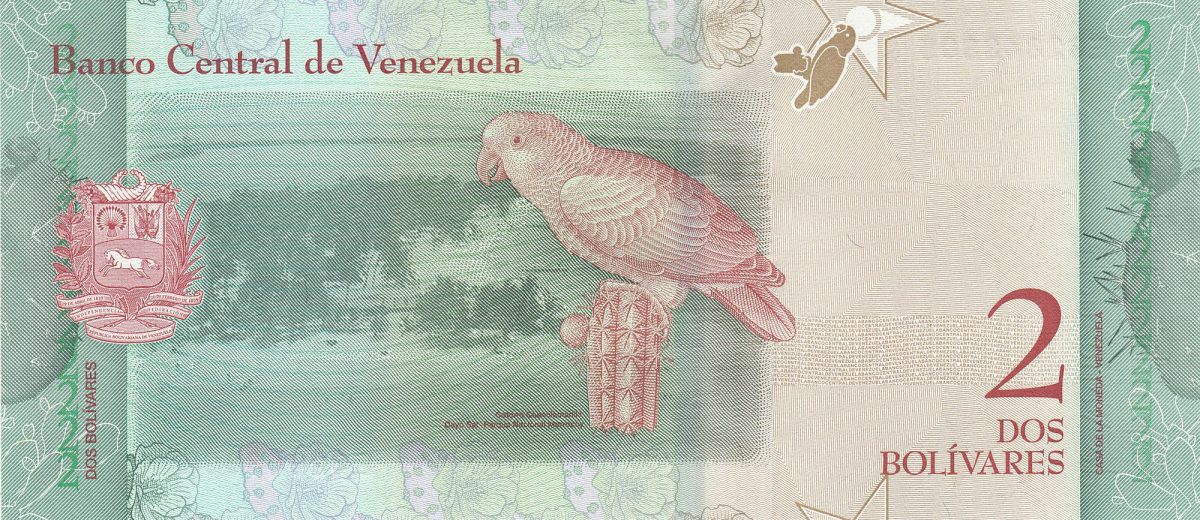 2 Bolívares of Venezuela Country (AD 2018) with A yellow headed parrot on a cactus