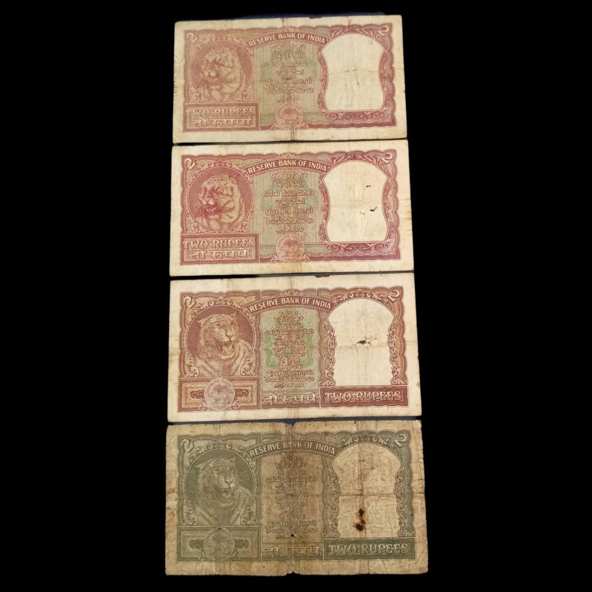 2 Rs Fafra HALF TIGER🐯 Issue Different Signatures and Types SET 4 Notes V. RARE Used Conditions