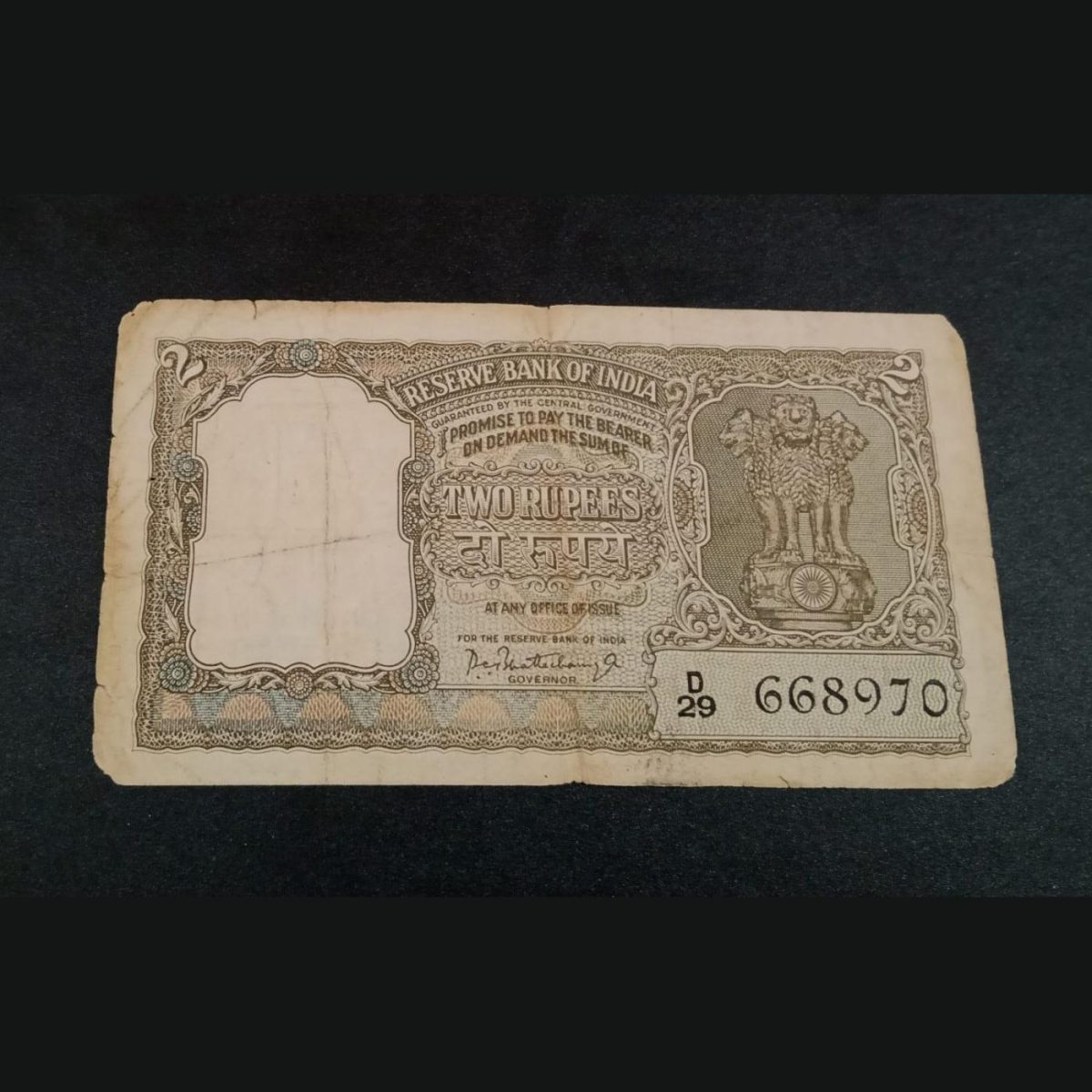 2 Rs FAFRA Issue OLIVE GREEN Half Tiger 🐯 P.C BHATTACHARYA with SEMI FANCY Number’s **RARE** Collec