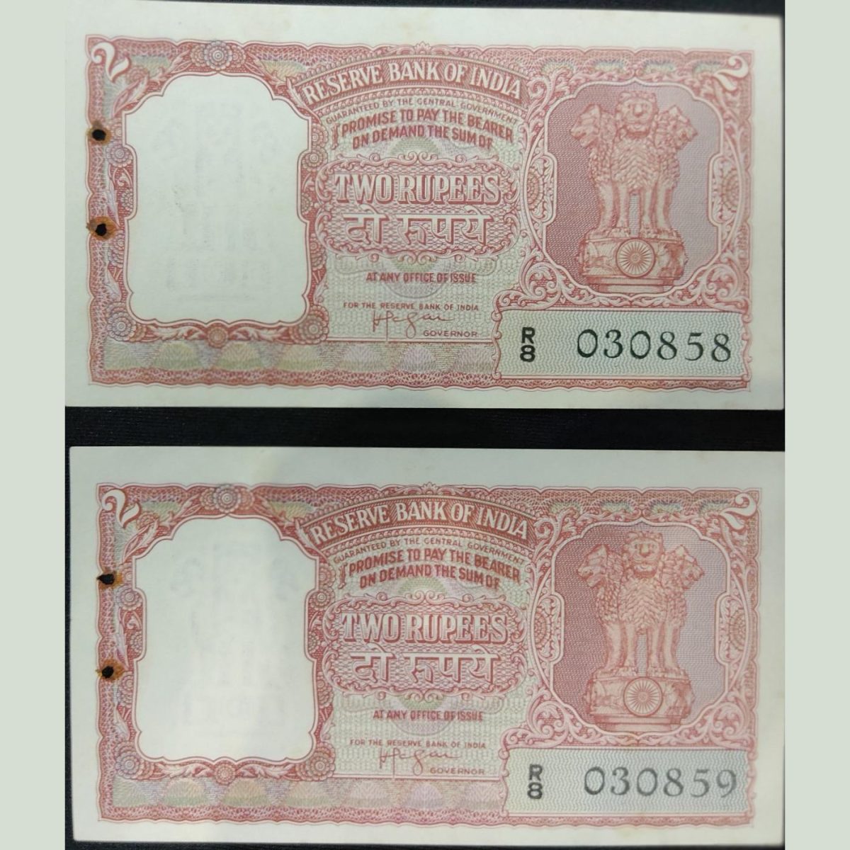 This 2 Rupee note featuring a half tiger design and signed by H. V. R. Iyengar is a rare gem for collectors. Issued in UNC (Uncirculated) condition, this piece holds a special place in numismatic history. The note, denominated at 2 Rupees, is a unique piece showcasing a striking combination of artistry and historical significance. Issued by the Reserve Bank of India, this note is a testament to India’s rich heritage and diverse wildlife.