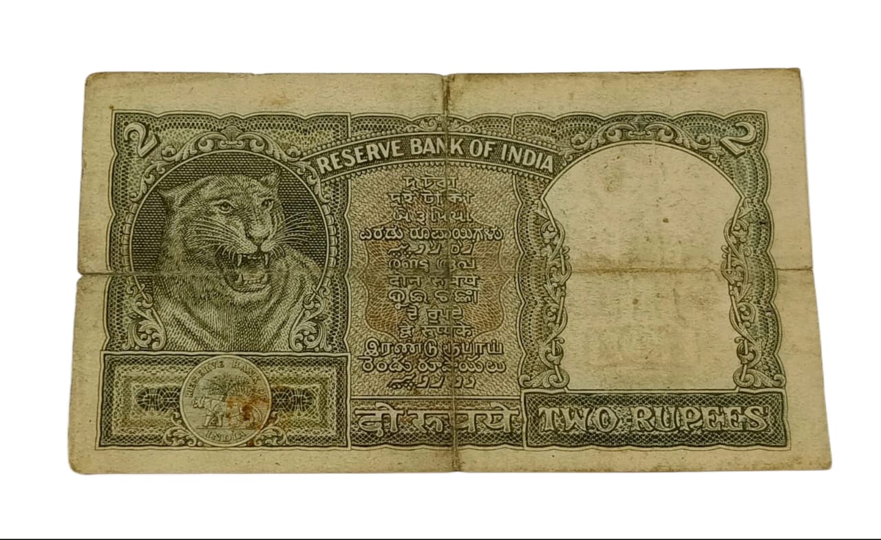 2 Rupees Big FAFRA Issue P.C BHATTACHARYA Half Tiger 🐯 OLIVE GREEN Color **RARE** Collectable Grade